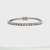 14K white gold tennis bracelet with 42 lab grown round diamonds weighing 9.35 carats total.