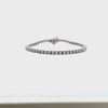 14K white gold tennis bracelet with 57 lab grown round diamonds weighing 5.25 carats total.