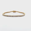 14K yellow gold tennis bracelet with 62 round faceted diamonds weighing 4.00 carats total.