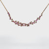 14K yellow gold necklace with pink sapphires weighing 0.90 carat total, morganite weighing 1.89 carats total, and diamonds weighing 0.55 carat total.
