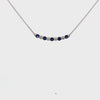 14K white gold necklace with five round blue sapphires weighing 0.79 carat total and four round diamonds weighing 0.40 carat total.