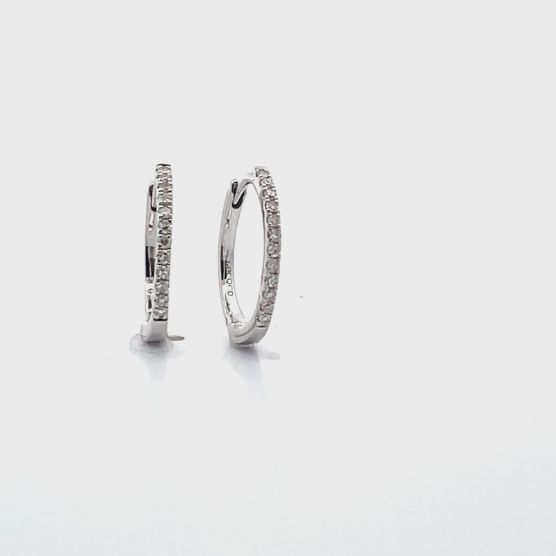 14K White Gold Huggie Hoop Diamond Earrings - 14mm