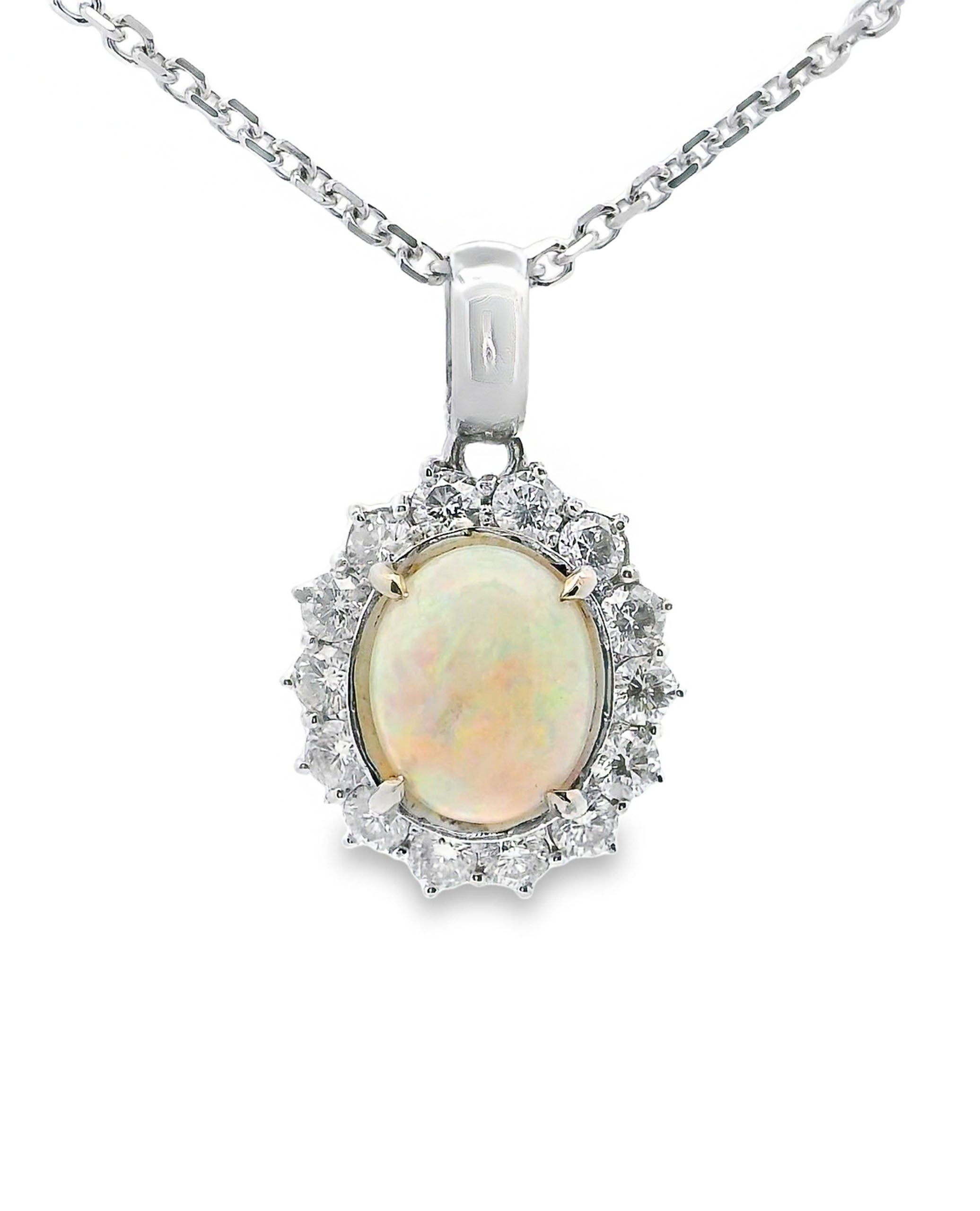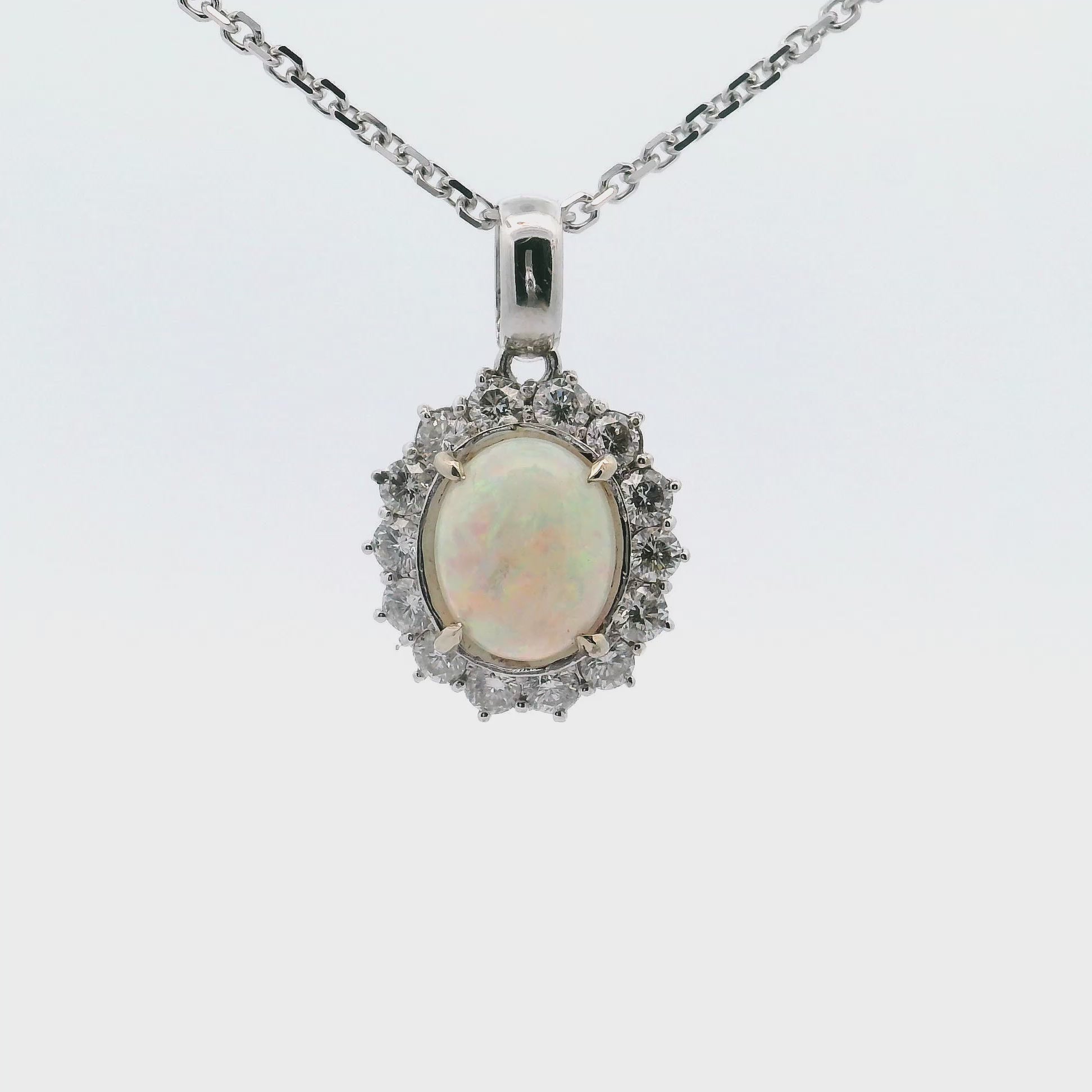 Oval Opal and Diamond Pendant Necklace in 14K White Gold